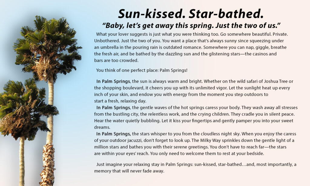 Work: Palm Springs The bright sun, the glistening stars…Palm Springs is the ultimate getaway place for you to enjoy this spring.